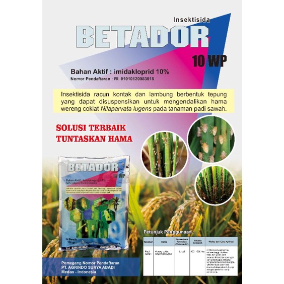 INSEKTISIDA BETADOR 10 WP 100gram Obat Pembasmi wereng coklat kutu walang Sangit Seperti Topdor Centador Tiodor Avidor Besvidor