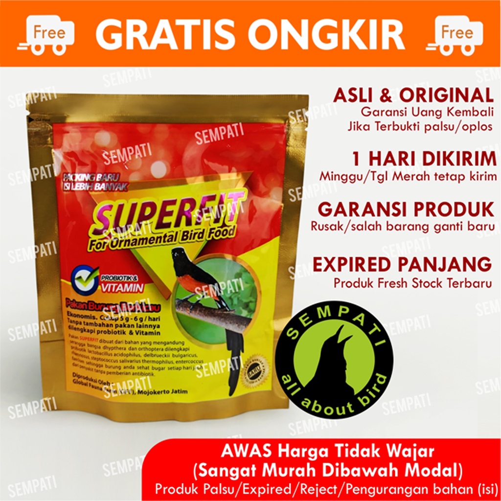 - Produk ini tidak sedang Flash Sale, tidak semua Seller suka Flash Sale, saya rasa ini bukan kekurangan, Jika Anda anggap Harga Rp. 7.500,00 itu murah untuk SUPERFIT GOLD ORIGINAL PAKAN VOER HIGH PROTEIN UNTUK BURUNG MURAI ANIS CILILIN KACER CIBLEK CENDET DLL ya ambil saja