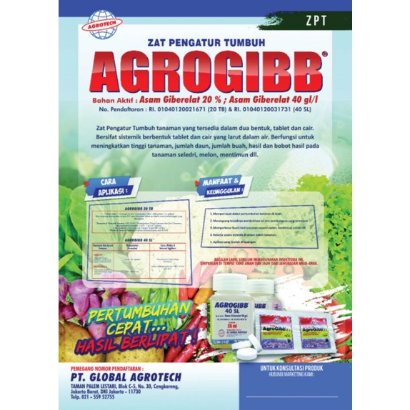 Agrogibb 40 SL ZPT Pembesar buah dan mempercepat pertumbuhan tanaman 35 ML