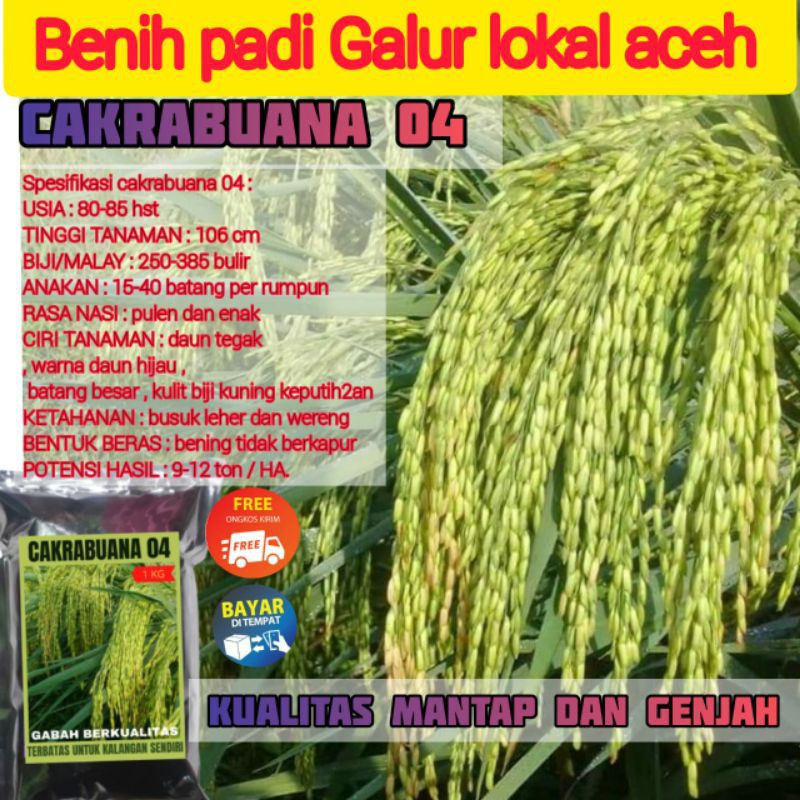 Akan saya uraikan kelebihan Benih padi CAKRABUANA 04 1Kg GENJAH BERKUALITAS tahan busuk leher dan wereng di Toko ini