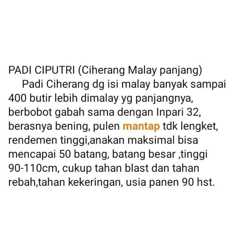 Akan saya uraikan kelebihan Benih Padi unggul CIPUTRI Berkualitas Ciherang Malay Panjang kemasan 5kg di Toko ini