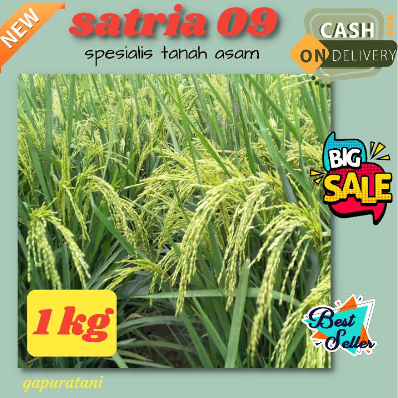Akan saya uraikan kelebihan benih padi unggul SATRIA 09 premium 1 kg tahan tanah asam di Toko ini