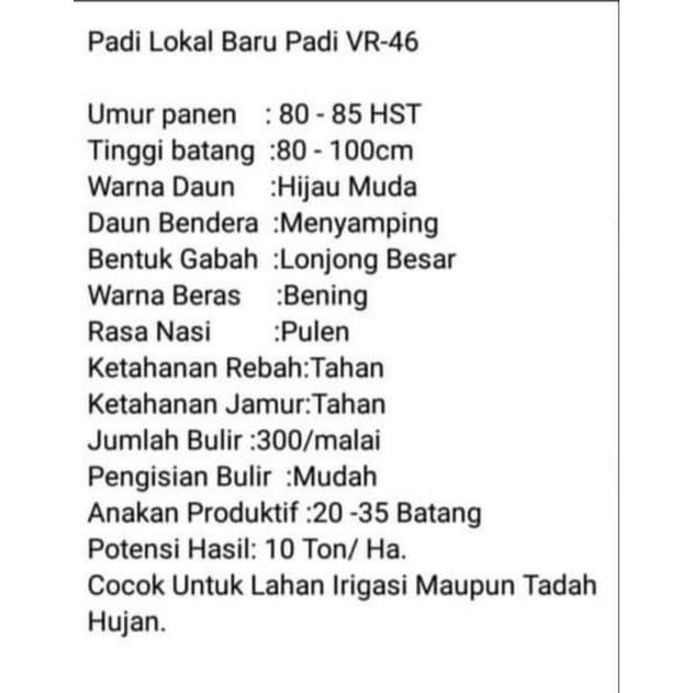 Alasan kenapa sahabat tani harus membeli Benih Padi VR46 Benih Unggul Umur Genjah 5 kg sekarang!