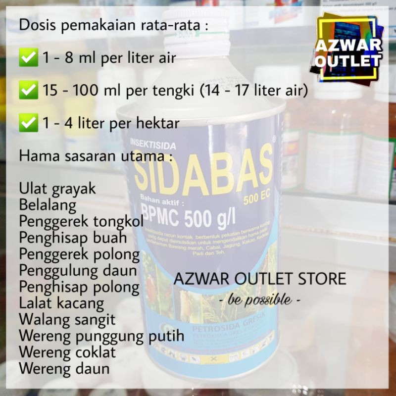 Produk SIDABAS 500EC 400ml | INSEKTISIDA BPMC racun hama ulat grayak, belalang, penghisap buah, penghisap polong, hama wereng, penggulung daun, penggerek tongkol dll ini harganya adalah Rp. 50.000,00 dan saat ini sedang Diskon , Produk ini sendiri saat saya tulis Artikel ini sudah dilihat sebanyak kali dan sudah disukai sebanyak 3 kali.